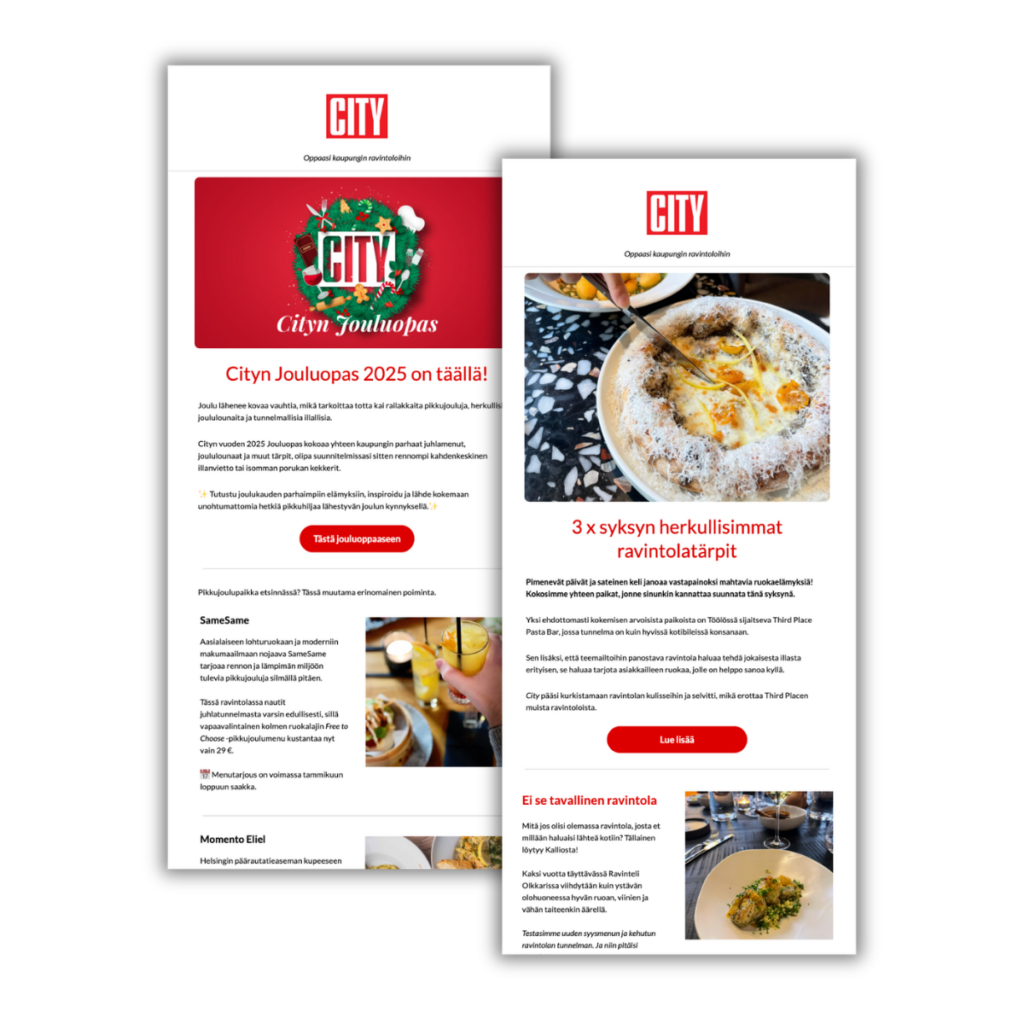 Cityn somekanavat tavoittavat aktiiviset kaupunkilaiset juuri siellä, missä he etsivät inspiraatiota ravintoloihin, tapahtumiin ja elämyksiin.
