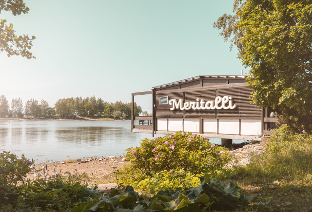 Töölönlahden rannassa sijaitseva sympaattinen Meritalli on paikka, jossa meri on kirjaimellisesti muutaman askeleen päässä. Tälle terassille voi istahtaa kuuntelemaan laineiden liplatusta kahvikuppi tai kylmä drinkki kädessä.