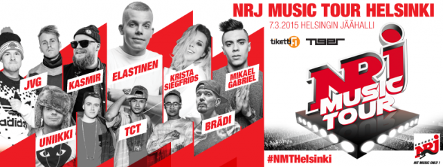 NRJ Music Tour, Helsingin Jäähalli, lauantai 7.3, klo 18.30, Liput alk. 36€, HUOM! Alle 12-vuotiaat vain aikuisen seurassa