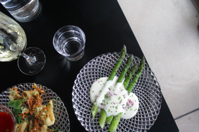 Listalta löytyy muun muassa rapeita kevätvihanneksia ja chilidippiä, villiyrttisalaattia, karhunlaukkapestopastaa, vegaaniburgeri ja tietenkin kausiruokia, tällä hetkellä esimerkiksi parsaa ja mesijuurta. Viinilistalta löytyy paitsi luomuviinejä, myös astetta puhtaampia alkuviinejä.