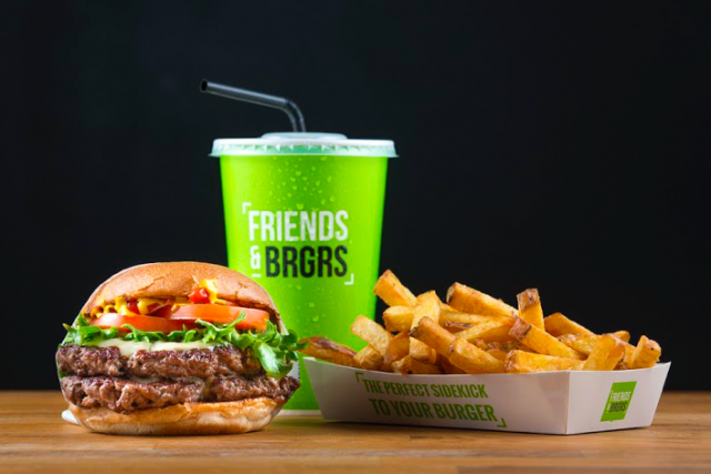 Friends & Brgrs käyttää hampurilaissaan tuoretta kotimaista lihaa, joka jauhetaan ravintolan keittiössä ja muotoillaan käsin pihveiksi. Ketjun oman tuotekehityksen tulosta olevat “triple-cooked” ranskalaiset valmistetaan kotimaisista perunoista niin ikään alusta loppuun ravintolassa. Jopa hampurilaissämpylät paistetaan ravintolan omassa leipomossa.
