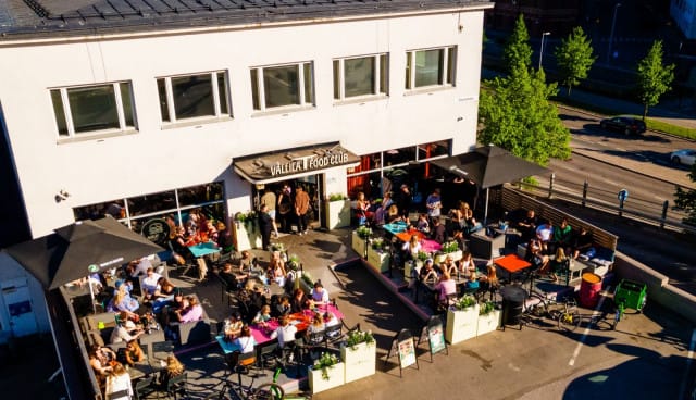 Sturenkadulla sijaitseva Vallila Food Club on enemmän kuin pelkkä ravintola. Kolmen katuruokaravintolan lisäksi tässä paikassa päästään nimittäin nauttimaan myös livemusiikista rennon tunnelman siivittämänä. Ja koska kesää on vielä jäljellä, ei kannata unohtaa myöskään aurinkoista terassia!