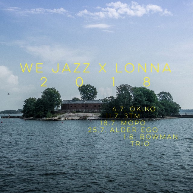 Kotimaisen jazzkentän edelläkävijänä tunnettu helsinkiläinen We Jazz järjestää viiden tapahtuman sarjan Lonnan saarella heinäkuussa. Koko perheelle soveltuvien jazz-iltojen sarja alkaa 4. heinäkuuta ja pitää kullakin kertaa sisällään We Jazzin levymerkillä julkaisevan kotimaisen huippukokoonpanon live-esiintymisen sekä We Jazzin DJ-kollektiivin levyvalinnat. Järjestyksessään kolmannessa Lonnan We Jazz -sarjassa nähdään tulevia albumeitaan valmistelevat Bowman Trio, rumpali Okko Saastamoisen luotsaama OK:KO ja rumpali Joonas Leppäsen Alder Ego. HIljattain We Jazzilla julkaisseista artisteista Lonnassa esiintyvät Jazz-Emman Form-albumillaan pokannut Teppo Mäkysen 3TM ja Mopocalypse-levyllään kansainvälistä huomiota saavuttanut Mopo. Tapahtumiin on vapaa pääsy ja lautta Lonnaan kulkee Kauppatorilta.