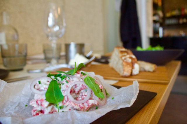 Entä sitten ruoka? Se on kekseliästä, raikasta, runsasta ja hyvää. Menu on mukavan suppea: alku- ja pääruokia on kumpaakin kolme ja jälkiruokia kaksi. Ruoassa suositaan lähituottajia ja sesonkiraaka-aineita, ja sen kanssa tarjoillaan tuoretta leipää. Annokset on suunniteltu siten, että ne ovat jaettavissa.