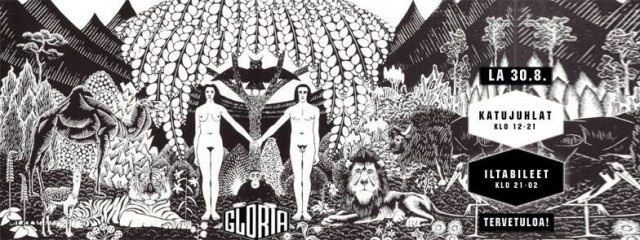 Glorian katujuhlat Pikku-Roobertinkadulla lauantaina 30. elokuuta kello 12-21. Iltajuhla (K-18) Gloriassa kello 21-02. Vapaa pääsy.