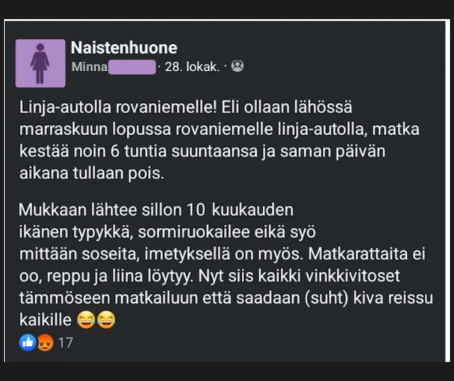 “En kyllä matkaisi 6h bussissa vaan tehdäkseni saman uusiksi illalla - mitä tuossa välissä edes kerkeää tehdä että olisi matkan arvoinen reissu, jos ei ihan sianpieremän aikoihin lähe ja palaa? Vauva ressu kans..” - Monitoroimaton tomaatti
