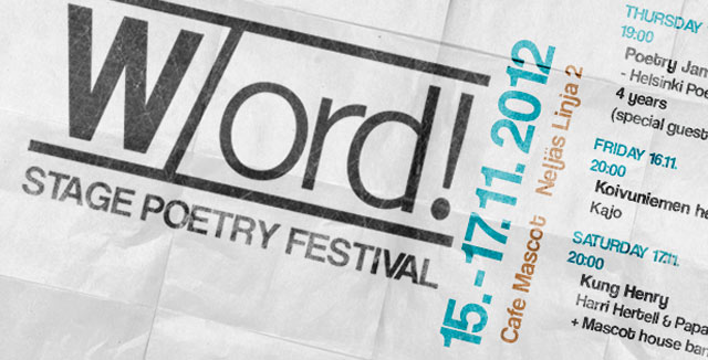 Lavarunousfestivaali W/ord 15.–17.11.2012 Café Mascotissa (Neljäs linja 2).