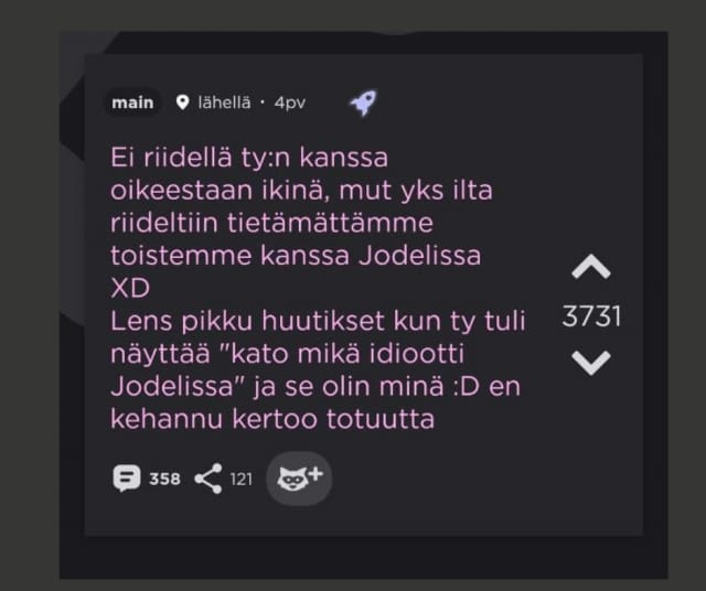 ”Yks ilta riideltiin tietämättämme toistemme kanssa Jodelissa XD”