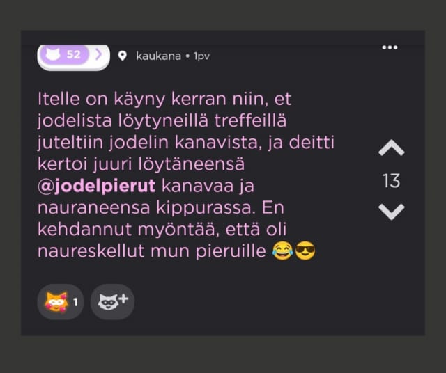 ”Ty tuli näyttää ‘kato mikä idiootti Jodelissa’ ja se olin minä :D”