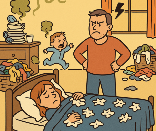 Kun vastuu lävähtää kerralla syliin, monen reaktio ei ole empatia vaan ärtymys. Tiskivuori ei raivostuta, vaan tunne siitä, että “minut on jätetty yksin koko tämän kaaoksen kanssa”. Se on epäreilu tunne, mutta usein täysin uusi – ja siksi se purkautuu kömpelösti. Sairas ihminen näyttää helpoimmalta maalitaululta, koska hän on se, jonka poissaolo kaiken aiheutti.