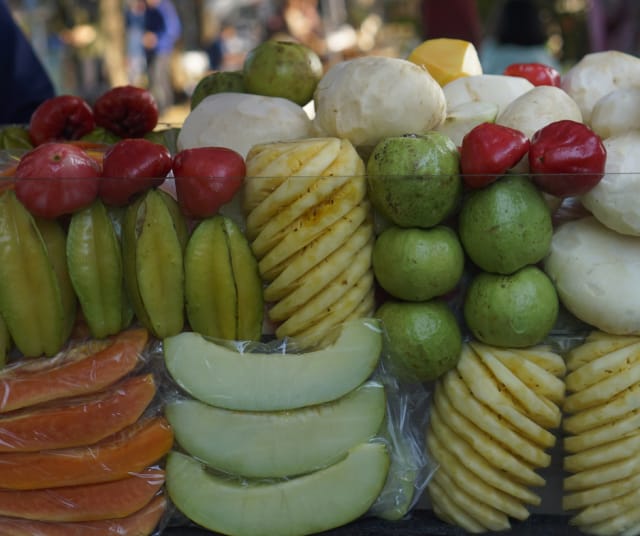 Monissa maissa salaattia pestään hanavedellä, joka voi olla saastunutta. Valitse kuorittu hedelmä tai kuumennettu kasvis.