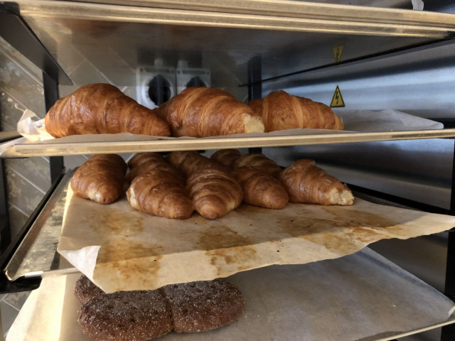 Uunissa paistuu muun muassa pH7-leipomon hapanjuurileipä, joka saa viimeisen silauksensa hotelliaamiaista nauttivien silmien alla.
