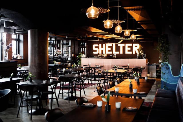 Kanavarannan makasiinirakennuksissa sijaitseva Shelter on täydellinen kohde ystäväporukoille monestakin eri syystä. Ensinnäkin Shelterin viihtyisä, rento ja tunnelmallinen miljöö on vertaansa vailla. Toinen erinomainen syy tämän paikan valintaan on tarjonta.