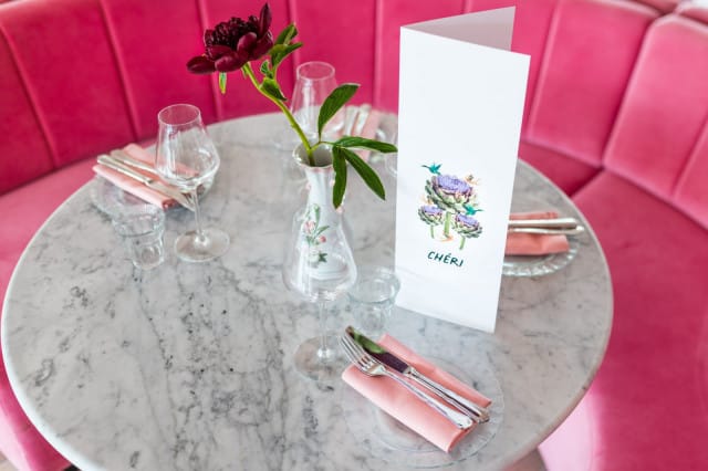 Elokuussa ovensa avannut Chéri on kuin tehty tyttöjen iltoihin! Tyylikäs, pariisilaista brasserieta henkivä sisustus vaaleanpunaisine tuoleineen ja pöydistä löytyvine ruusuineen hurmaavat jo ennen kuin olette ehtineet istua alas.