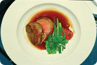 ![]() | 7. Coeur de fileet pekoniin käärittynä vihreiden papujen ja madeirakastikkeen kera ravintola Särkänniemessä. |