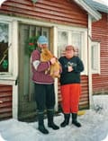 ![]() | 1. Edesmenneen Kemu-lehmän isäntäväki Pentti ja Raili Sarja ja tiibetinspanieli Hallikainen Kannuksessa Keski-Pohjanmaalla |