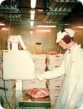 Leikkuulinjastossa seisoo lihaveisten kanssa parikymmentä lihanleikkaajaa. Kukin paloittelee työpäivän aikana kuusi kokonaista nautaa neljäksi eri paistiksi, fileiksi, palapaistilihoiksi ja leikkolihaksi, josta jauhetaan jauhelihaa. Palat ja paistit heitellään liukuhihnalle, jonka päässä ne lajitellaan omiin sammioihinsa.