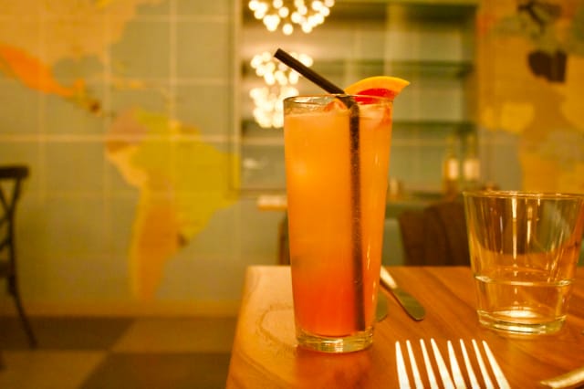 Millainen: Trooppisen näköinen, kauniin värinen drinkki on kuin lohdullinen pala kesää talven keskellä. Juoma sopii vanhassa kasarmirakennuksessa toimivan ravintolan linjaan: se on nostalginen ja perinteinen, ja samalla yllättävä lasillinen kesälomaa jäillä. Kaartin lonkero on italialaisranskalainen versio perinteisestä: puolet Camparia, puolet Cointreauta, loput lonkeroa, maustetaan verigreipillä. Erityistä plussaa siitä, että juoma sopii mielettömän kauniisti ravintolan seinälle vuonna 1935 maalattuun maailmankarttaan.