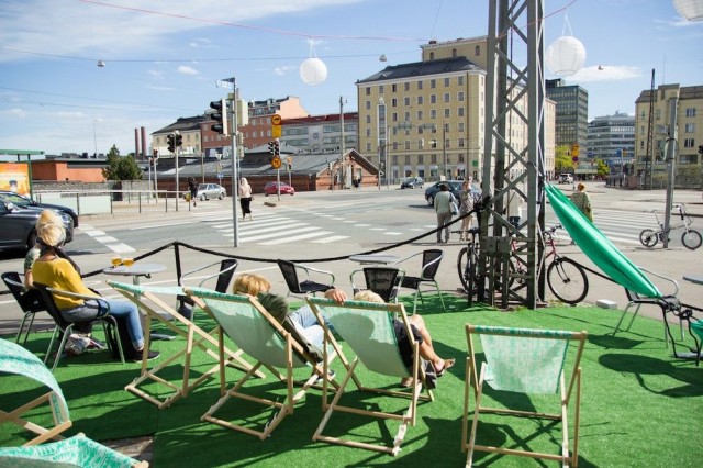 Oletko jo huomannut Mäkelänkadun ja Hämeentien risteyksessä olevan vihertävän keitaan? Jos et, niin nyt on korkea aika käydä tsekkaamassa, sillä risteyksessä on Ravintola Kapsäkin mainio kesäterassi viihdykkeineen.