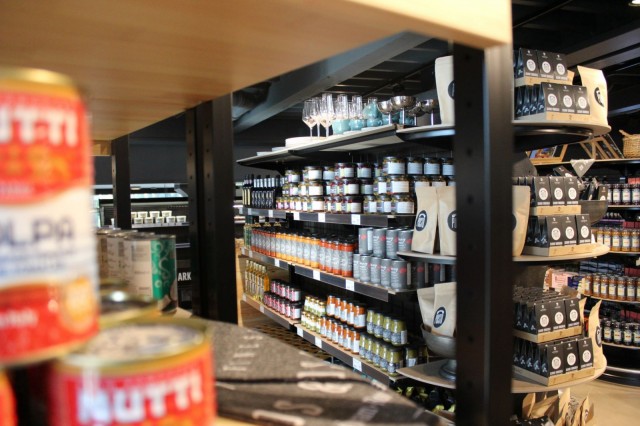 Ravintolan yläkerrassa on delipuoti ja kahvila, jonka herkkuja notkuvat vitriinit näkyvät suurien lasi-ikkunoiden läpi suoraan Hämeenkadun vilinään. Kahvilasta voi ostaa kahvilatuotteita, salaattilounasta ja pizzaa, herkkukaupasta vaikkapa ainekset piknikille viereiseen puistoon. Vaikka kaupan ja kahvilan yhdistelmä tuo ensin mieleen huoltoaseman, ovat hyllyjen valikoimat kaikkea muuta kuin huoltsikkaosastoa: tuoreita hedelmiä, eksoottisia hilloja, juustoja, keksejä ja muita herkkuja. Kaupan nimi onkin Puiston Herkku.