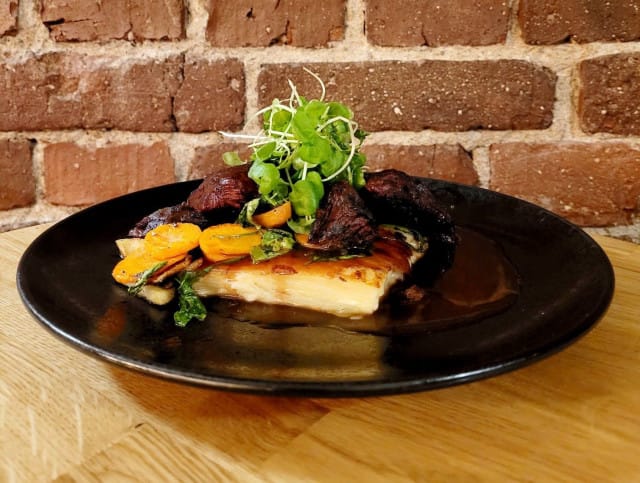 Tämä Gastropub Löydön tarjous on todellinen löytö! Annos sisältää 130 grammaa pitkään kypsytettyä naudan hanger steakia, joka tarjoillaan perunakakun, paistettujen vihannesten ja täyteläisen punaviinikastikkeen kera. Tavallisesti komeus kustantaa 26 €, mutta SYÖ!-viikkojen ajan saat sen 12 €:lla!