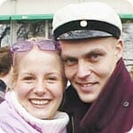 7. Vanessa Broman ja Antti Lehtovirta – pelastavat enkelit Espoon Aluepelastuslaitokselta – jaksoivat juhlistaa vappua Kaivon terassilla 24 tunnin työputken jälkeen. |