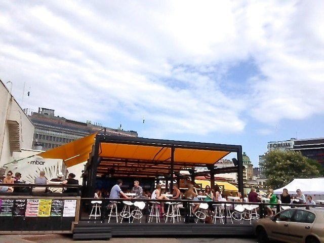 “Jos alueella on asutusta, lupien saanti säännölliseen anniskelu- ja musatoimintaan on kiven alla. Toinen puoli on se, että Suomen suvisää on kovasti vaihteleva. Tarvitaan kunnon stage ja markiisit ja mielellään kiinteä PA. Sellaisille taas ei oikein saa rakennuslupaa. Kaupunki perii vuokraa neliöistä, ei asiakaspaikoista kuten ennen. Kun yhtälöön tulee palkkiot bändille, extra pokeille ja teknikoille sekä tekijänoikeusmaksut, vaaditaan terassilta myös kokoa, jotta myynneillä kulut katetaan. Lasipalatsin aukiolla mbarin terassissa yhtälö toimi hienosti. Yli tuhat eri artistia esiintyi meillä viimeisen kolmen vuoden aikana.”