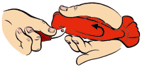 - Saksen laihempi osa, “peukalo”, irtoaa vetämällä. Mukana tulee ehkä hieman rapulihaa.
