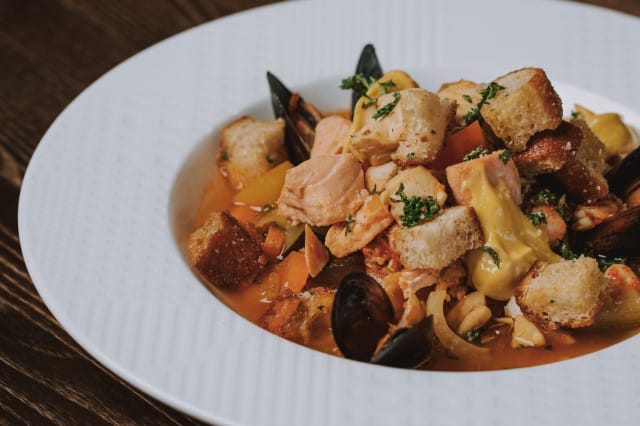 Ravintolan Bouillabaisse-kassin avulla keität elämäsi parhaimman Bouillabaisse-keiton. Kassi sisältää valmiiksi kuutoituja kaloja, bouillabaisselientä, kasviksia, sahramiaiolia, krutonkeja , sinisimpukoita, jokirapuja ja tietysti ohjeet keiton valmistukseen.