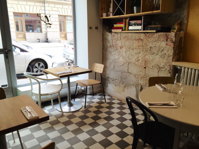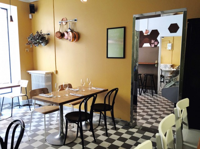 Pariisilaisen neobistron henkinen ravintola muistuttaa lattiasta kattoon sekä ranskalaista kortteliravintolaa että newyorkilaista delipuotia, ja sisustuskin on sen mukainen. Ruudullisesta lattiasta, eriparituoleista ja hyllyillä toisiinsa nojailevista kirjoista syntyy kotoisa ja kutsuva tunnelma. Sisustuksessa on kunnioitettu tiloissa ennen sijainnutta leipomoa.