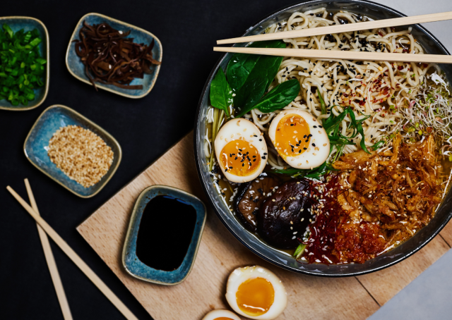 Yksi herkullisimmista vegaanisista herkuista on käsintehtyjä nuudeleita, friteerattua tofua ja maukasta pitkään haudutettua lientä sisältävä Vege Chili Tonkatsu, jonka löydät sekä Skanssin että Yliopistonkadun Momotoko-ravintoloista.