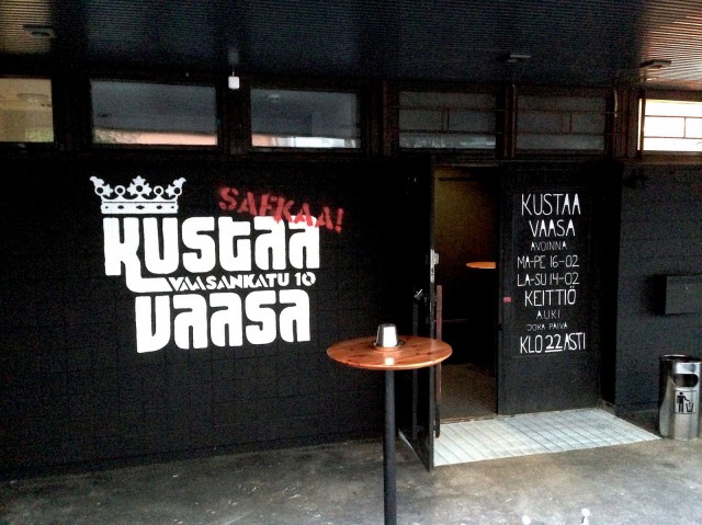 Kustaa Vaasa, Vaasankatu 10. Avoinna ma-pe 16-02, la-su 16-02, keittiö avoinna joka päivä 22 asti.