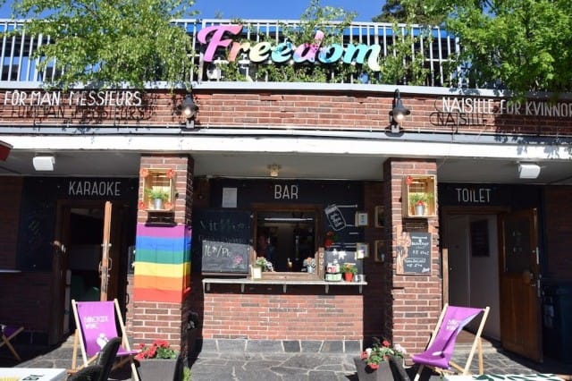 Stadionin kupeessa oleva sateenkaari-terassi on yksi kesän must visit -mestoista. Terassi on kaksikerroksinen ja siellä on myös erillinen karaokehuone. Koko miljöö Freedomissa on hauska: sateenkaaren värejä, yksisarvisia, hauskoja tekstejä ja pientä söpöä somistusta löytyy sieltä täältä. Baarimikot ovat Freedomissa mitä hauskimpia ja ystävällisiä ja juttelevat mielellään asiakkaiden kanssa. Musiikkina soi erilaiset biletysbiisit, mutta listaan mahtuu chilliäkin soitettavaa.