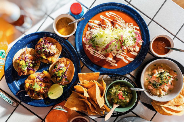 Kympillä pääset testaamaan muun muassa marinoitua kanaa chipotle-tomaattikastikkeessa sisältäviä Chicken Tinga Tacoja, tempurapaistetulla turskalla täytettyjä Baja Fish Tacoja tai adobo-kastikkeessa marinoitua jakkihedelmää sisältäviä Jäkkihedelmä Adobo Tacoja.