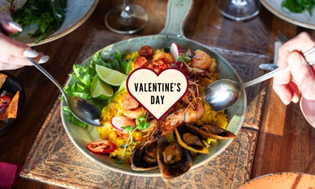 Latinalaisiin makuihin erikoistunut Maya Bar & Grill suosittelee ystävänpäivän kunniaksi talon erikoisuutta, jaettavaa Paella Cubana Para Dosia. ‘