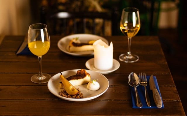 Illallisen kruunaa hintaan sisältyvä lasillinen cavaa tai alkoholitonta kuohuvaa.