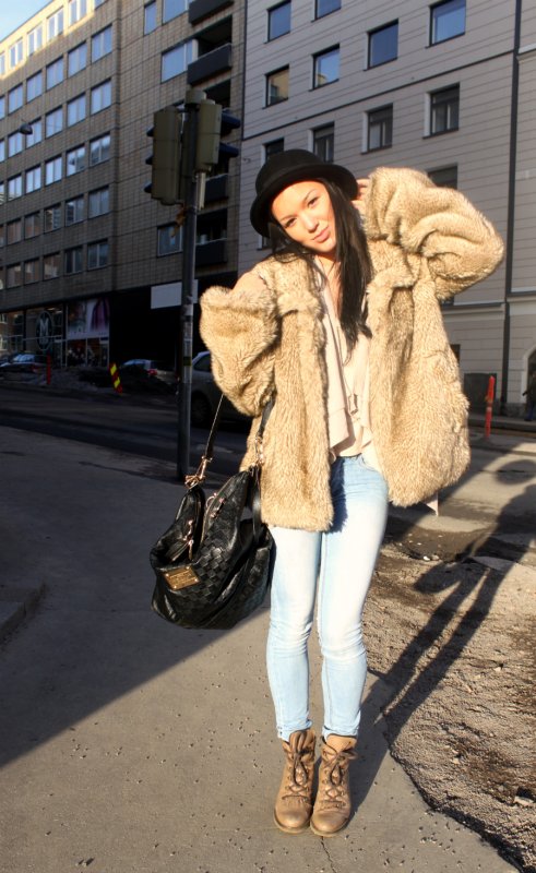 takki Nelly, paita Bangkok, farkut Nelly, kengät Bianco, hattu Monki.