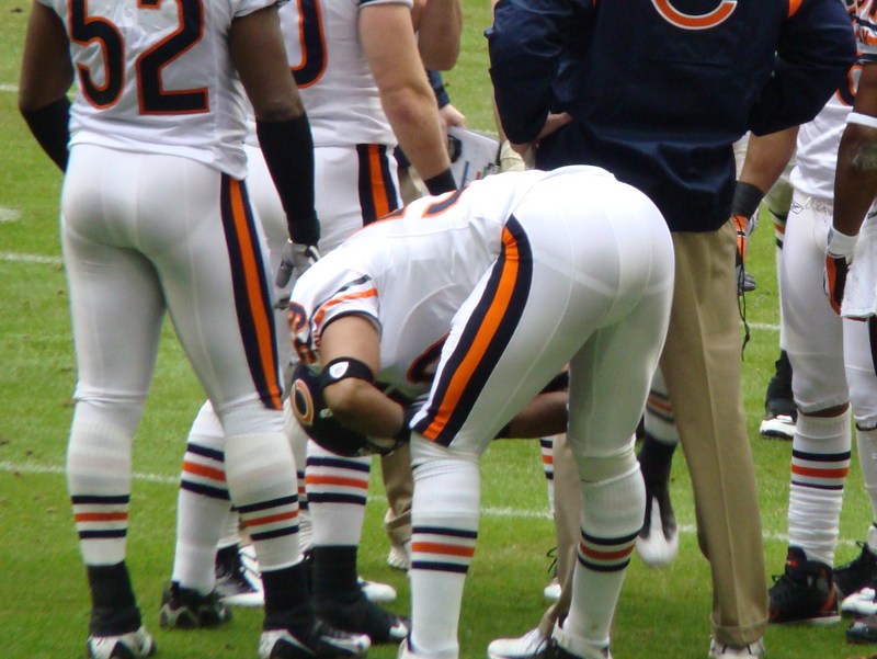 Jenkkifutista pelaavalla miehellä on aika erikoiset alushousut ja vielä iso mies.
