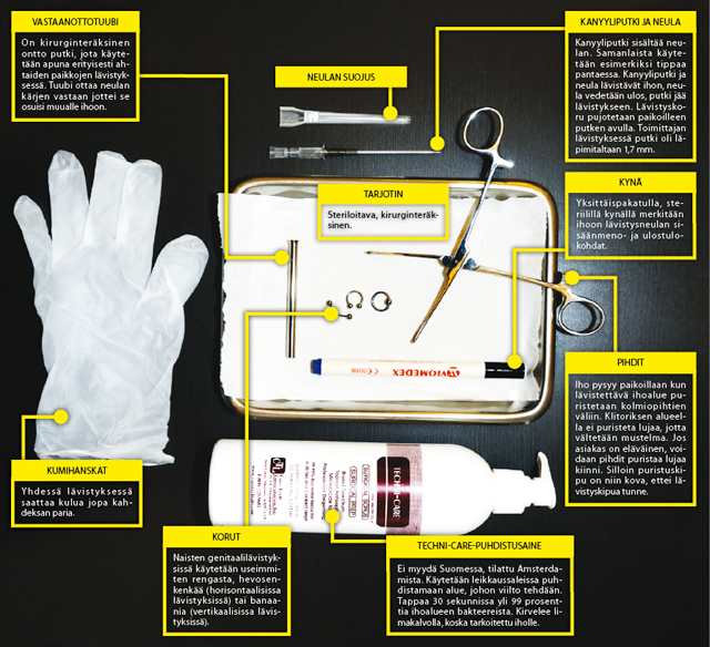 ”Muita lävistyksiä tehdään eniten parikymppisille, mutta genitaalilävistysten kanssa ikähaarukka on laaja. Asiakas voi olla samana päivänä 18 vuotta täyttänyt tyyppi, joka on haaveillut vain täysi-ikäisille tehtävästä genitaalilävistyksestä vuosia. Vanhin asiakas on ollut yli seitsemänkymppinen. Aluksi genitaalilävistyksiä hankkivat lähinnä vähemmistöt, kuten homot, sm-skene ja suomenruotsalaiset”, kertoo 15 vuotta genitaaleja lävistänyt Marko.
