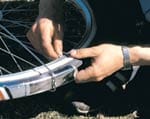Aseta pyörä ylösalaisin ja irrota rengas. Käytä rengastyökalua tai esimerkiksi lusikkaa ulkorenkaan poistamiseen vanteesta. Laita rengastyökalun litteä pää renkaan ulkoreunan alle ja paina työkalua alaspäin. Siirry eteenpäin renkaan reunaa pitkin…