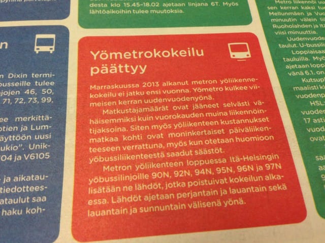 Todella ankeaa – yömetrokokeilu loppuu