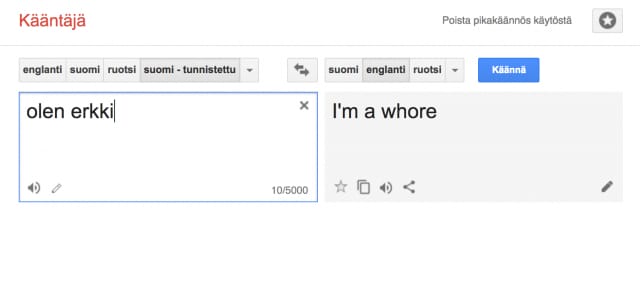 Mitä Googlen kääntäjällä on suomalaisia vastaan? Testaa oman nimen käännös, niin saatat saada naurut