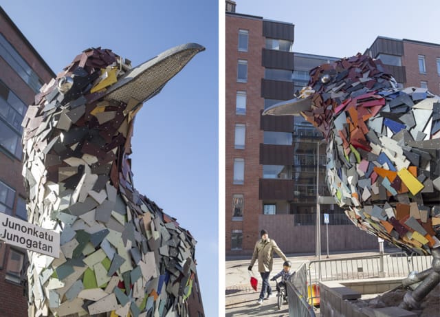 Ympäristötaidehanke koristaa aluetta kuusimetrisellä Kuukkelilla.