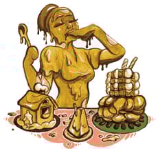 Sara La Fountain puhaltaa sokeria ja grillaa porsaankyljyksiä.