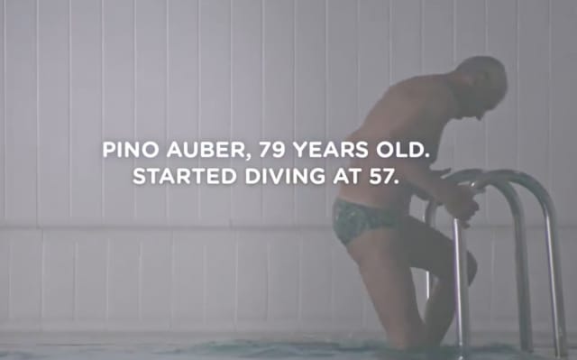 Pino Auber aloitti uimahyppäämisen 57-vuotiaana ja parikymmentä vuotta myöhemmin voltti on kaunis.