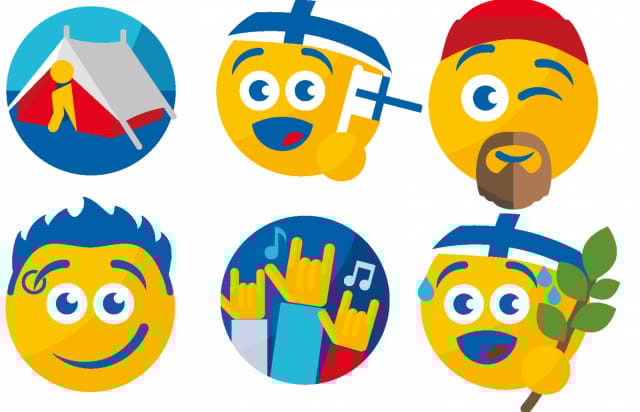 Kesäiset hipsteri- ja hippi-emojit kuvaavat Suomen festarikesää