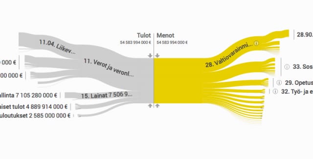 Valtionbudjetti.fi näyttää mihin yhteiset rahamme käytetään ja mistä ne kerätään.