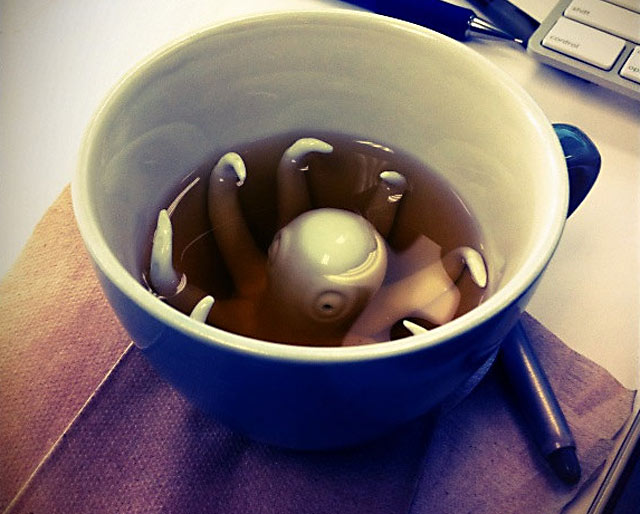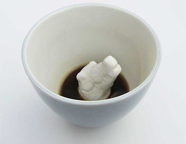 Yumi Yumi -niminen suunnittelijaryhmä tekee hauskoja kahvikuppeja, joiden sisällä vaanivat erilaiset villieläimet. Tällä hetkellä brooklynilaisen ryhmän kupeissa väijyvät mustekala, krokotiili, hai, saukko, pelikaani ja hummeri.