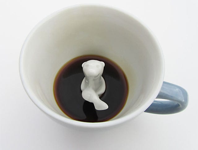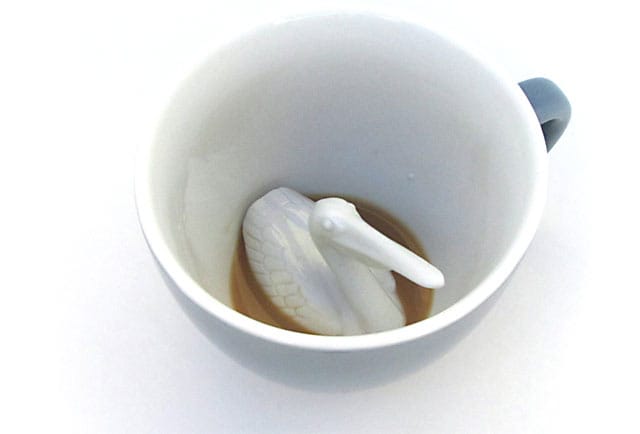 Yumi Yumi -niminen suunnittelijaryhmä tekee hauskoja kahvikuppeja, joiden sisällä vaanivat erilaiset villieläimet. Tällä hetkellä brooklynilaisen ryhmän kupeissa väijyvät mustekala, krokotiili, hai, saukko, pelikaani ja hummeri.