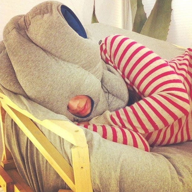 Yksinkertaista, helppoa, tehokasta ja dorkan näköistä. Siinä pähkinänkuoressa Ostrich Pillow, pään ympärille kietoutuva tyyny, jonka kanssa voit nojata instant-torkuille missä tahansa. Tyynystä löytyy myös aukot, jotka tarjoavat kätösillesi pehmeää turvallisuutta siirtyessäsi unimaailmaan.